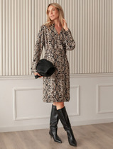 Совместные покупки Курган Женская одежда Платья — Vilatte Платье на запАх из вискозы с принтом D22.258 черный-коричневый