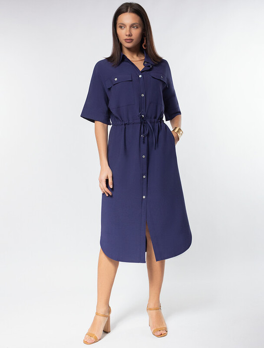 Совместные покупки Курган Женская одежда Платья — Vilatte Платье-рубашка из плотного лиоцелла D22.209 дымчатый синий