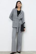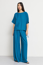 Прямые брюки выполнены из велюра. Модель с широким поясом дополнена шнурком из репсовой ленты и серебристой фурнитурой. Легкий и мягкий материал с матовой фактурой придает изделию нежность и комфорт. Хорошо держит тепло и форму – идеальное решение для домашнего отдыха. Сочетается в костюме с худи D49.053