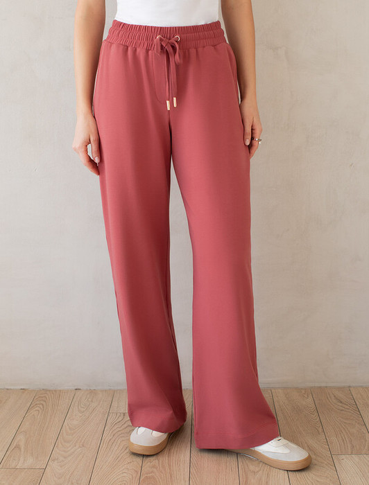 Брюки выполнены из футера двухнитки с эластаном. Модель прямого кроя дополнена боковыми карманами и одним задним карманом. Пояс выполнен из эластичного трикотажа в рубчик. В пояс вставлен плоский хлопковый шнур в тон изделия с серебристыми наконечниками. Изделие дополнено металлическим логотипом бренда. Сочетается в костюме с жакетом D49.078, джемпером D49.079, D49.080 и футболкой D49.081