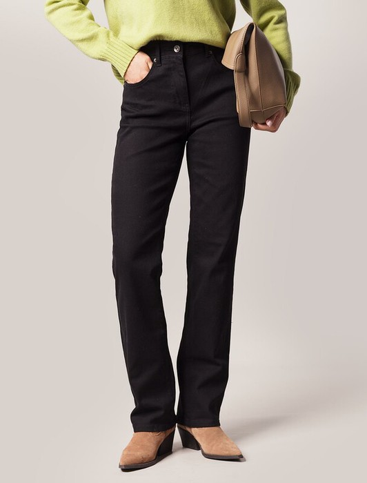 Прямые джинсы выполнены из эластичного денима. Удлиненная модель универсального черного цвета легко впишется в любой, даже строгий офисный образ с жакетом и блузкой. Комфортная посадка на талии подходит для любой фигуры, ткань хорошо тянется и не сковывает движений. На поясе сзади расположен нашивка из эко-кожи с логотипом бренда. Длина изделия позволяет выбрать к образу обувь на каблуке