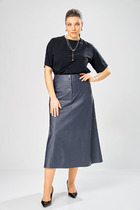 Совместные покупки Курган Женская одежда Юбки — Vilatte Расклешенная юбка из искусственной кожи D26.183 коричневый