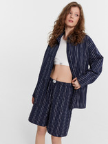 Шорты выполнены из футера двухнитки с эластаном. Модель прямого кроя дополнена боковыми карманами и одним задним карманом.  Пояс выполнен из эластичного трикотажа в рубчик. В пояс вставлен плоский хлопковый шнур в тон изделия с серебристыми наконечниками. Изделие дополнено металлическим логотипом бренда. Сочетается в костюме с жакетом D49.078, джемпером D49.079, D49.080 и футболкой D49.081