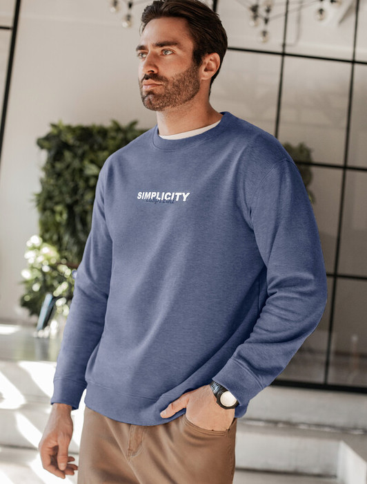 Совместные покупки Курган Мужская одежда Джемперы, свитеры — Vilatte Свитшот с авторским принтом из эластичного футера трехнитки U49.038 сини