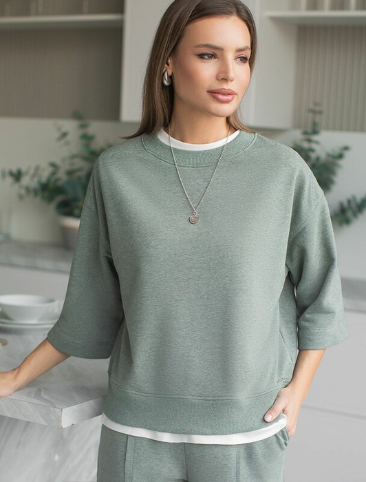 Совместные покупки Курган Женская одежда Джемперы, свитеры, водолазки — Vilatte Свитшот свободный из петельчатого футера двухнитки с эластаном D49.139 о
