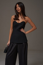 Топ с V-вырезом выполнен из премиального хлопка. Модель дополнена регулируемыми бретелями, позволяющими носить изделие на нужном уровне. Эластичный материал гарантирует комфорт и формоустойчивость. Из украшений металлический логотип бренда.