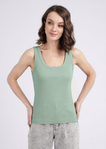 Топ выполнен из трикотажа в широкий рубчик. Премиальное качество хлопковых волокон и наличие эластана в составе изделия, обеспечивают абсолютный комфорт, не сковывая движений. Изделие обладает хорошей формоустойчивостью и надолго сохранит свой безупречный внешний вид. Металлический логотип бренда.
