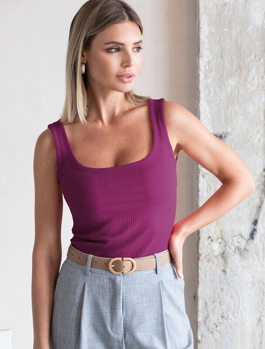 Совместные покупки Курган Женская одежда Майки, топы — 06.04 Vilatte Топ из трикотажа в широкий рубчик D43.224 пурпурный