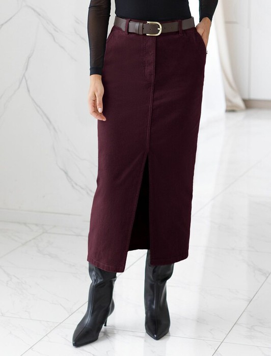 Совместные покупки Курган Женская одежда Юбки — Vilatte Юбка из эластичного микро-вельвета D26.189 бургунди