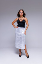 Юбка-миди трапециевидного силуэта  выполнена из мягкого хлопкового микро-вельвета с добавлением эластана. Изделие комфортно садится по фигуре и не сковывает движения. Модель дополнена высококачественной фурнитурой с фирменным логотипом бренда. Хорошо комбинируется с вязаным трикотажем, блузками и денимом.Также прекрасно станет альтернативой деловым низам  в нестрогом офисном дресс-коде.