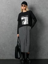 — Vilatte Юбка миди с разрезом из струящегося плотного сатина D26.205 черный