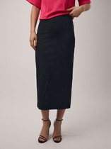 Vilatte Юбка миди с разрезом из струящегося плотного сатина D26.205 кофейный