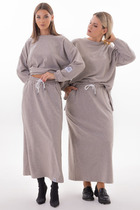 Юбка-шорты выполнена из эластичного футера двухнитки. В боковых швах расположены карманы. Внутренняя часть кармана из тонкого хлопка в тон полотна. Модель дополнена эластичным поясом, с контрастной полосой и золотистым логотипом бренда. Сочетается в костюме с джемпером D49.083 и D49.086