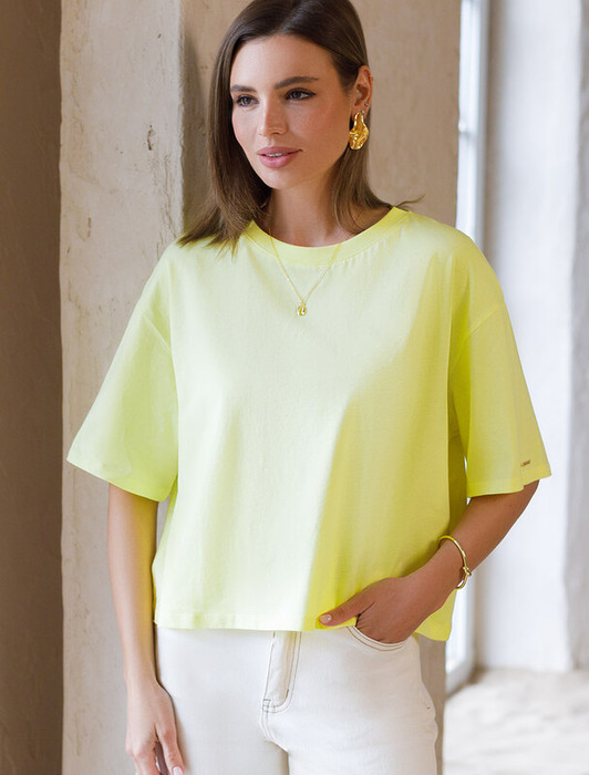 Совместные покупки Курган Женская одежда Футболки — Vilatte Укороченная футболка силуэта овер-сайз D49.090 лимонный