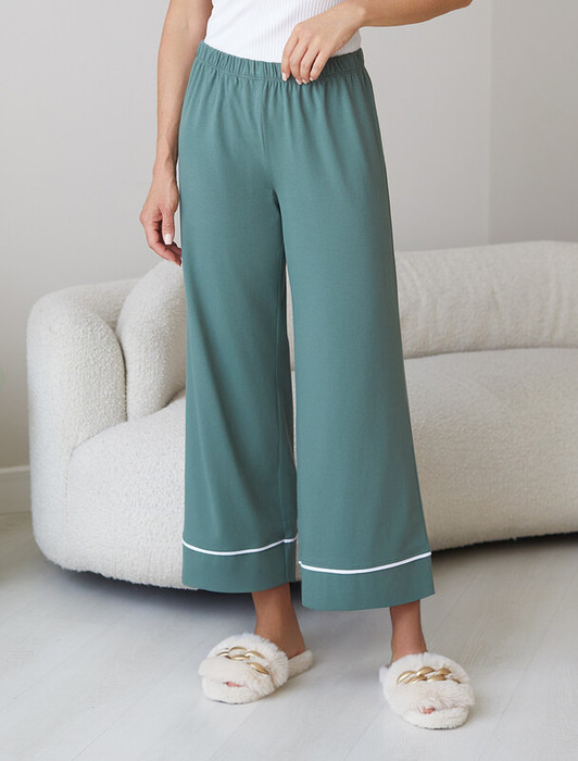 Совместные покупки Курган Женская одежда Домашняя одежда — Vilatte Укороченные брюки из эластичного хлопка с контрастным кантом D44.154 т.о