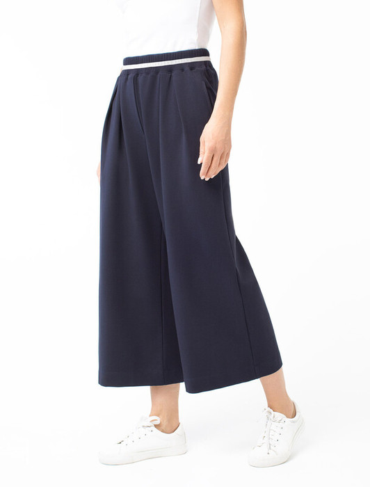 — Vilatte Укороченные широкие брюки из эластичного футера двухнитки D44.141 т.сини