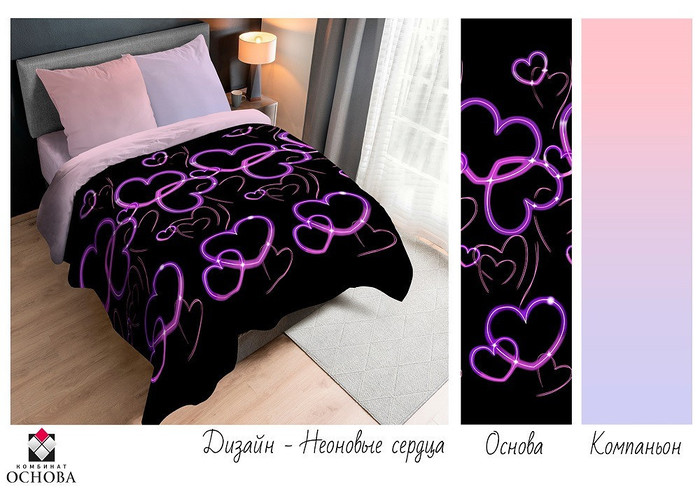 Бука(компаньон ). Неоновые сердца ( простыня из компаньона+ наволочки из основной ткани)