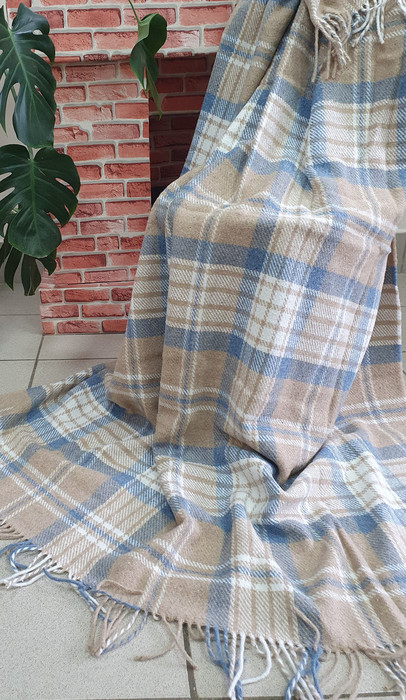 Совместные покупки Курган Товары для дома и дачи Покрывала, пледы — ВЛАДЛЕН Плед полушерстяной 2сп (50% шерсть) - Бежево-голубой