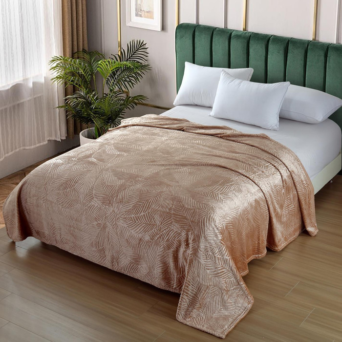 Совместные покупки Курган Товары для дома и дачи Покрывала, пледы — ВЛАДЛЕН Пледы велсофт - Пальмовая ветка (Бежевый)
