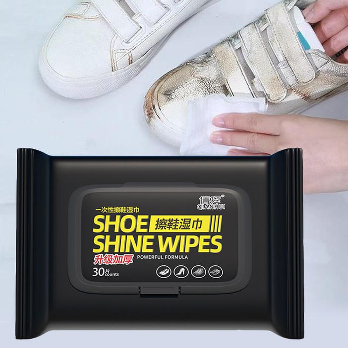Влажные салфетки для обуви 30 штук с пластиковым клапаном.