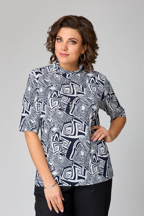 Совместные покупки Курган Женская одежда Джемперы, свитеры, водолазки — Водолазка Bliss 8092 синий, белый (принт лабиринт)