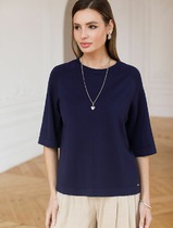 Vilatte Свободный джемпер с рукавом 3/4 тонкой вязки из вискозы D39.403 темно-си