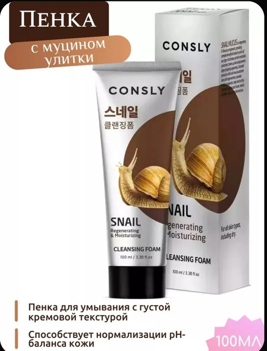 Совместные покупки Курган Косметика и парфюмерия Средства для умывания — Восстанавливающая кремовая пенка для умывания с муцином улитки Consly