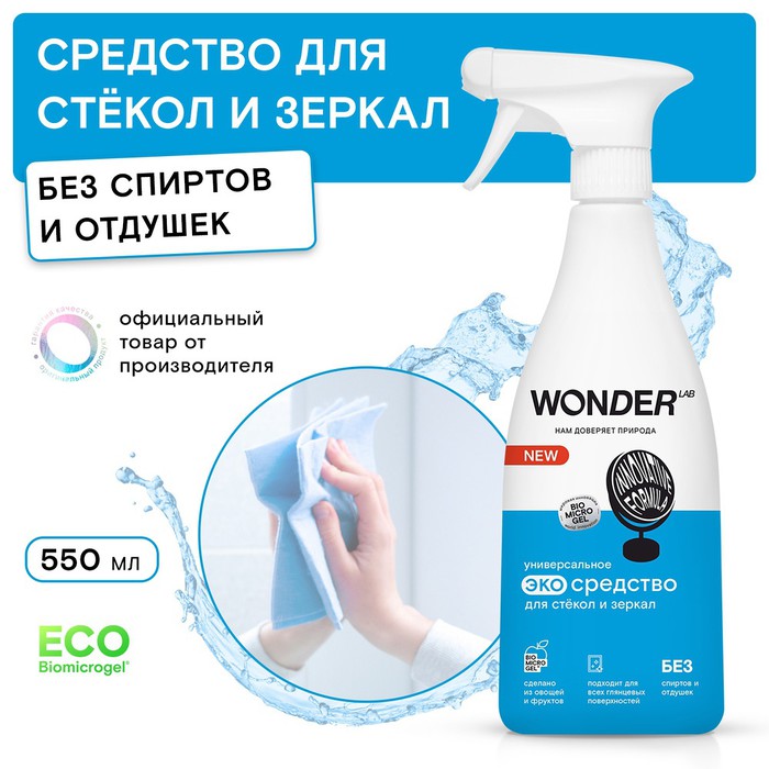 Это инновационное и безопасное универсальное экосредство для стекол и зеркал WONDER LAB 550 мл разработано для ежедневного ухода за окнами, зеркалами, мониторами, глянцевыми поверхностями и люстрами. Благодаря инновационной формуле BIOMICROGEL® универсальное средство не оставляет плёнок, царапин и разводов. Не содержит спирты и отдушки. Удивительная формула экосредства безопасна для всех членов семьи и окружающей среды.