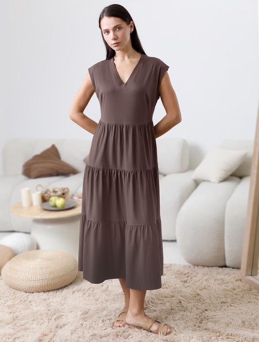 Ярусное платье А силуэта с V вырезом из 100% премиального хлопка