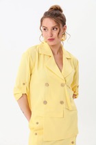 Удлиненный жакет прямого силуэта с накладными карманами.