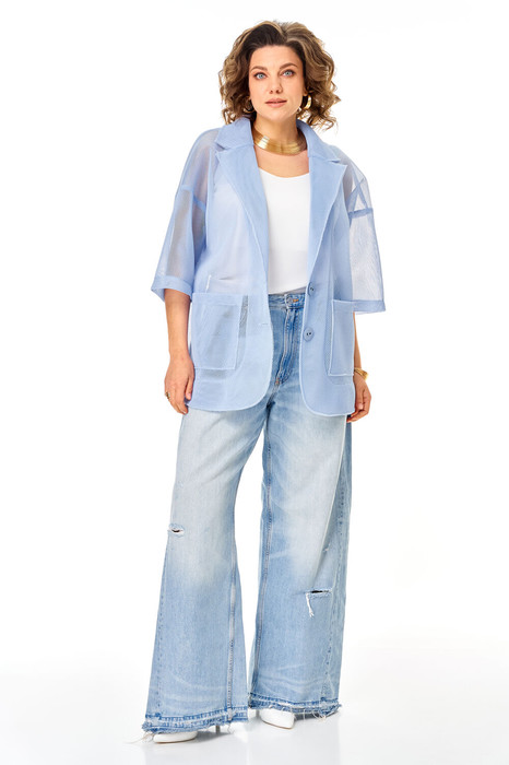 Жакет женский из оригинального трикотажного полотна, напоминающего объемные соты, станет отличным дополнением к вашему гардеробу. Модель прямого силуэта со спущенным рукавом, рукав 3/4 длины, застежка на пеллю и пуговицу, воротник пиждачного типа. По полочке идут накладные карманы, низ фигурный. Все шва и срезы не обработаны. Длина рукава: (50-66)-28см. Длина по спинке : (50-54)-76см., (56-60)-78см, (62-66)-80 см