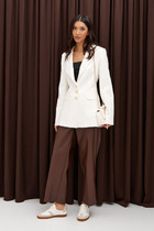 Длинный втачной рукав и два накладных кармана делают модель не только стильной, но и практичной. Жакет легко впишется в повседневный гардероб — он будет одинаково хорошо смотреться с офисными брюками, джинсами или свободными брюками, добавляя образу лёгкую небрежность.