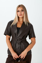 Жакет полуприлегающего силуэта выполнен из полотна насыщенного голубого цвета. Характеристики: полуприлегающий силуэт, подкладка, подплечники, двубортная застежка, миниатюрные не функциональные пуговички по переду изделия, воротник с остроугольным лацканом, по переду карманы с клапаном, рукав втачной, по низу рукава вертикальный разрез, разрез на пуговичках. Длина жакета 69 см, длина рукава 63.