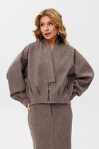 Стильный жакет выполнен из фактурного полотна цвета мандарин. Характеристики: укороченный жакет, подкладка, воротник стойка, застежка центральная - молния, рукав свободного кроя спущен, низ рукава заканчивается резинкой, спинка цельнокроеная, низ изделия на резинке. Длина по спинке 51 см, длина рукава от края горловины 81 см.
