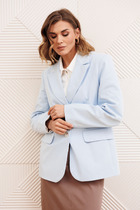Жакет прямого свободного кроя выполнен из костюмной ткани черного цвета, декорирован несъемными цветами из шифона . Характеристики: прямой свободный крой, брендированная подкладка, подплечники, воротник с остроугольным лацканом, застежка центральная на петлю - пуговицу, по переду функциональные карманы с клапаном, рукав втачной, по низу рукава нашиты пуговички, спинка со средним швом, в среднем шве разрез 24 см. Длина по спинке 76, длина рукава 63 см.