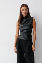 ESENIA Джемпер поло из вискозы с коротким рукавом - Чёрный