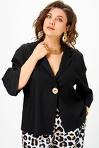 Нежный утонченный жакет выполнен из плотной костюмной ткани, обработан подкладкой. Приталенный крой мягко облегает фигуру, а изящные подплечники добавляют образу уверенности и грации, напоминая о классических образах французского кинематографа. Складки, создающие рельеф баски, мягко ложатся на бедра за счет своей геометрии. Рукава прямые втачные, одношовные.
