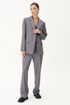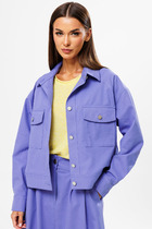 Жакет женский полуприлегающего силуэта выполнен из костюмной ткани с добавлением эластана на подкладке.  Воротник втачной с отложным лацканом, рукав двухшовный с разрезом, на полочке обработаны функциональные карманы с листочкой. Застегивается на завязки,  длина жакета 75 см, длина рукава 53 см.