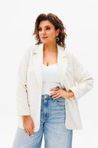 Жакет женский полуприлегающего силуэта с декоративным подрезом по переду полочки, рукав втачной 3/4 с разрезом в локтевом шве, без воротника застежка на крючок,карманы листочки обработаны в подрезе.