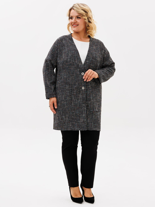 Популярный тренд-жакет в стиле Шанель. Лаконичный удлинённый жакет прямого силуэта , без воротника. Линия плеча спущена. Длинный рукав, Снизу можно отложить манжет .По переду выполнены два удобных накладных кармана. Застёжка центральная бортовая на две петли и пуговицы. Очень практичный и достойный вариант на каждый день для современной ,активной девушки, на работу, отдых, прогулку.