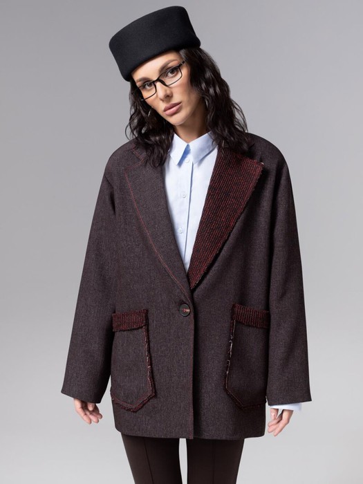 Состав: Костюмная ткань «тиар», трикотаж «меланж», «плат кагзи» (65% п/э, 30% вискоза, 5% спандекс)