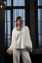 Совсем скоро на экраны выходит «Грозовой перевал» – история о чувствах, которые не спрашивают разрешения. Образ с жакетом «Против правил» звучит в том же ключе: сдержанный снаружи, но с удивительным характером внутри. Этот жакет – про выбор идти наперекор, когда другие предпочитают не рисковать. Жакет ЧАРУТТИ с приталенным силуэтом формирует фигуру, а декор на рукавах акцентирует женственность. Для уверенного настроя в самые важные дни.