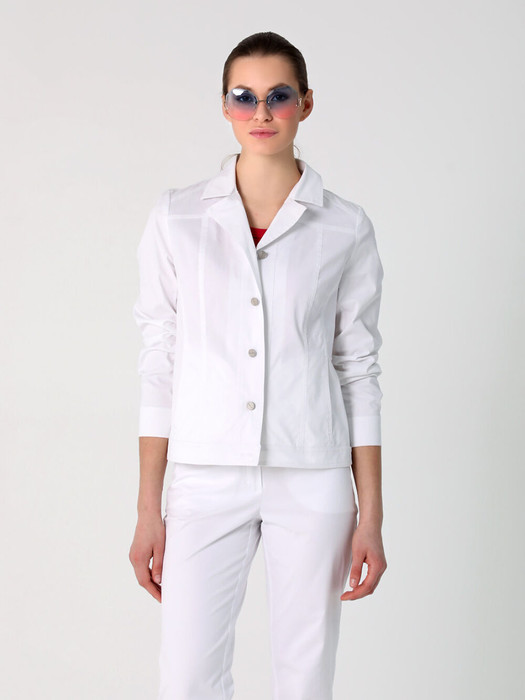 Укороченный жакет полуприлегающего силуэта БЕЗ ПОДКЛАДКИ подходит для девушек и женщин любого возраста. Застежка - на петли и пуговицы. Воротник жакетного типа с лацканами. Низ втачного рукава оформлен манжетой. Небольшие прорезные карманы расположены в рельефных швах. Ширина пояса в области бедер регулируется хлястиками. Женский легкий пиджак на весну, лето и осень выполнен из плотного хлопка.  Ткань хорошо "дышит".  Такой жакет-куртку можно удачно сочетать с брюками (арт. 25240), выполненными из такого же хлопка.  В весенний, летний и осенний сезон такой жакет можно носить в офис, на прогулку, на вечерние встречи с друзьями. Собирайте свои образы, дополняйте их яркими аксессуарами и наслаждайтесь комфортом в летние дни!
