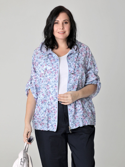 Летний блузон из  хлопка с актуальным эффектом вышивки украсит гардероб женщин и девушек любого возраста. Такая легкая курточка прямого силуэта  с укороченными рукавами покроя реглан хорошо дополнит образ как с платьем или с юбкой, так и с брюками или с шортами. Застежка на двухзамковую молнию позволяет расстегнуть блузу как сверху, так и снизу. Удобно расположенные втачные карманы подходят для хранения мелочей. Фантазируйте с образами и аксессуарами, и эта стильная курточка выручит Вас летним вечером в городе и на отдыхе.