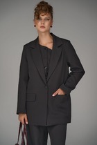 Жакет в стиле smart casual. Жакет прямого силуэта с пиджачным воротником, имеет удобные накладные карманы и застежку на 2 пуговицы. На левом лацкане вышивка-логотип в цвет ткани. Низ и борта имеют открытые края (эффект необработанного шва), укреплены дополнительной строчкой. Жакет без подкладки.