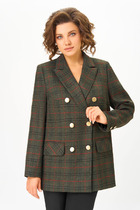 Жакет изготовлен из костюмной ткани, прямого силуэта, на подкладке, двухбортный, застежка на декоративную пуговицу и потайную кнопку. Перед с нагрудными выточками, входящими в прорезной карман в рамку, с боковыми рельефами, переходящими на спинку. Спинка со средним швом и шлицей. Воротник отложной с фигурными лацканами. Рукав втачной, двухшовный, на подкладке. Лаконичный фасон и женственность, индивидуальность и стиль - именно такими словами можно охарактеризовать этот жакет, который идеально подойдёт и для работы в офисе, и для торжественного случая.
