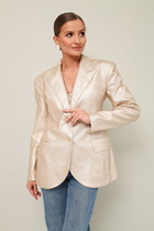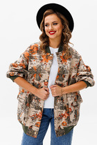 Свободный жакет с застёжкой на петлю и пуговицу. Прорезные функциональные карманы с клапанами. Жакет дополнен яркой подкладкой.