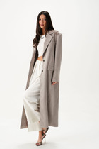 Однобортный объёмный жакет на подкладке прямого силуэта из костюмного текстильного полотна. Застежка центральная бортовая на потайную кнопку. По переду изделия прорезные карманы с клапанами. Рукава втачные двухшовные. Спинка со средним швом и завышенной шлицей. Этот конструктивный приём позволяет создавать необычные стильные образы с ремнём или поясом. Пояс из ременной тесьмы красного цвета входит в комплект. Натуральное шерстяное волокно позволяют телу дышать, полиэстер делает изделие более износостойким, а лайкра удобным в носке. Длина рукавов 62 см, длина по спинке 76 см.