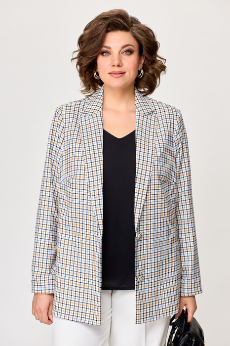 Представьте себе величественную даму, идущую с изяществом и уверенностью, восхищающую всех своим непринужденным стилем. Её образ – это искусное сплетение элегантности и современной роскоши. На ней – женский  жакет, созданный для того, чтобы притягивать восхищенные взгляды! Жакет, в котором она словно воплощает элегантность и власть, олицетворяет роскошь и стиль! Он выглядит как произведение искусства: однобортный, с центральной застёжкой на две изысканные пуговицы, создающие ощущение истинного роскошного шика. Отложной воротник с лацканом придает образу особый шарм и респектабельность. Спинка и перед пиджака украшены изысканными рельефами, которые подчеркивают женственные линии фигуры. Прорезные карманы в листочку дополняют его стиль и функциональность, а подкладка добавляет ощущение роскоши и комфорта.
