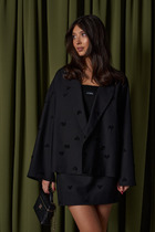 Текстильный классический жакет прямого кроя. Детали: жакет полуприлегающего силуэта, пиджачный воротник, перед с прорезными карманами, двубортная застежка на петли и пуговицы, спинка со средним швом, рукава втачные двухшовные, жакет на подкладке